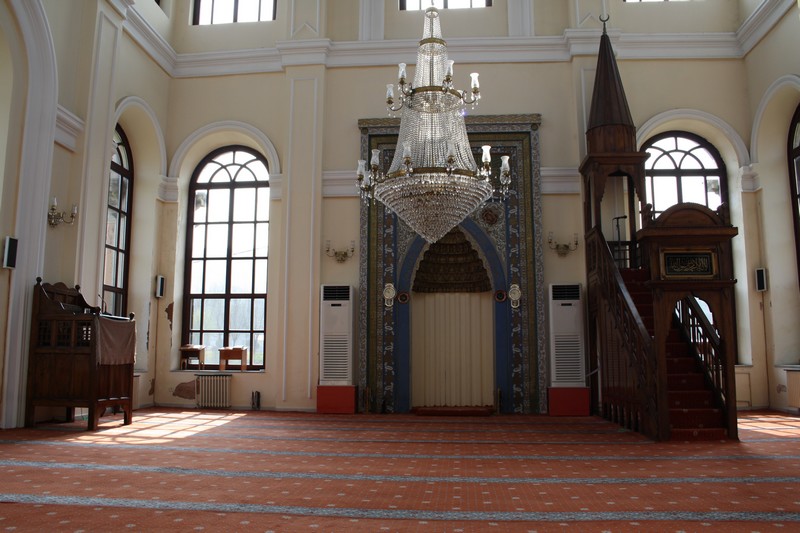 Camii dönemin batı mimari etkileriyle yapılmıştır. Çift sıra pencereli ve muntazam kesme taştan duvarlar üzerinde ahşap bir kubbe bulunur. Üstü kurşun kaplı kubbenin içi çiçek desenleri ile süslüdür. Mihrap ve duvarlarındaki süslemelerden günümüzde sadece mihraptakiler kalmıştır.